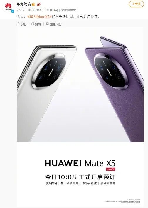 【华为Mate60 Pro+、Mate X5在华为商城开启预订】9月8日消息,华为商城官网显示,华为新一代旗舰Mate 60系列出现新型号“Mate60 Pro+”。该型号已于9月8日上午10:08开启预订,并预计于10月9日前完成发货。华为Mate60 Pro+与之前未发先售的“Mate60 Pro”一样,华为官方没有官宣任何信息。目前,该机型缺货。Mate X5系列也是供不应求,上线后秒光,官网显示“暂时缺货”。(手机中国)