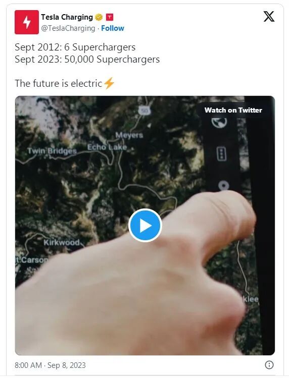 【特斯拉宣布全球超充桩数量突破5万】特斯拉宣布已经在全球部署了超过5万个超级充电桩。2012年9月,特斯拉启动了超级充电站网络,当时只有6个超充桩,而11年后的今天已扩大到5万个。特斯拉在其网站上表示:“5万多个超级充电桩,特斯拉拥有并运营着全球最大的快速充电网络。”该公司声称,其超充桩可以在15分钟内增加200英里的续航里程。(环球市场播报)