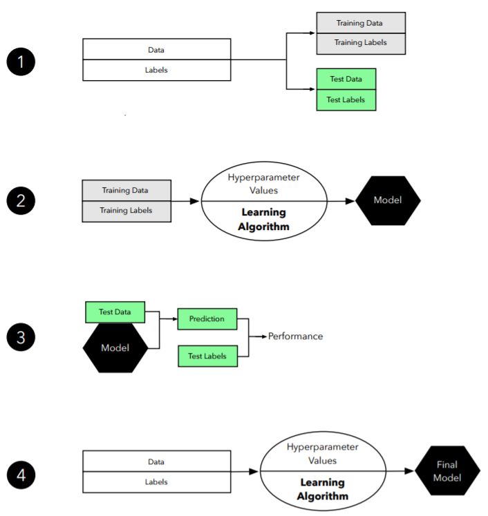 图 12:超参数调整中三路留出方法(three-way holdout method)图示。
