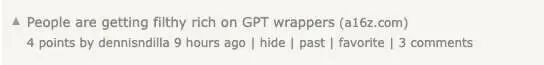 另外,有些生成式 AI 产品在网站流量方面的表现非常好。一些 GPT-wrappers 比市值数十亿美元的公司每月获得的访问量还多。也就是说 GPT 产品还是非常吸引用户的。