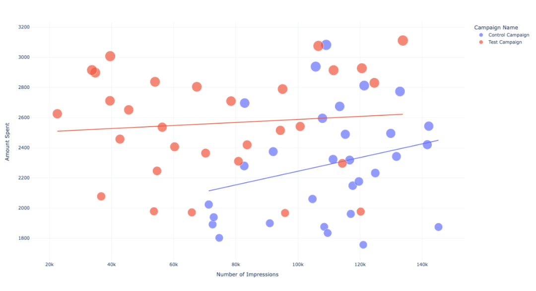 发现在花费相同的情况下,「对照活动」的展示次数更多。