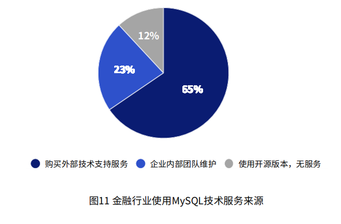 金融行业中,技术人员运维MySQL能力不足,六成以上企业需购买外部技术服务。