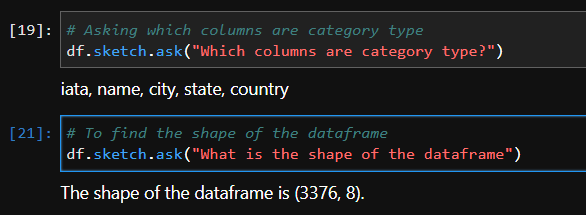 # 描述表单的形状行和列的大小 df.sketch.ask("What is the shape of the dataframe")