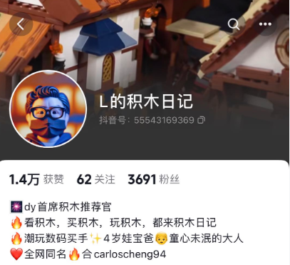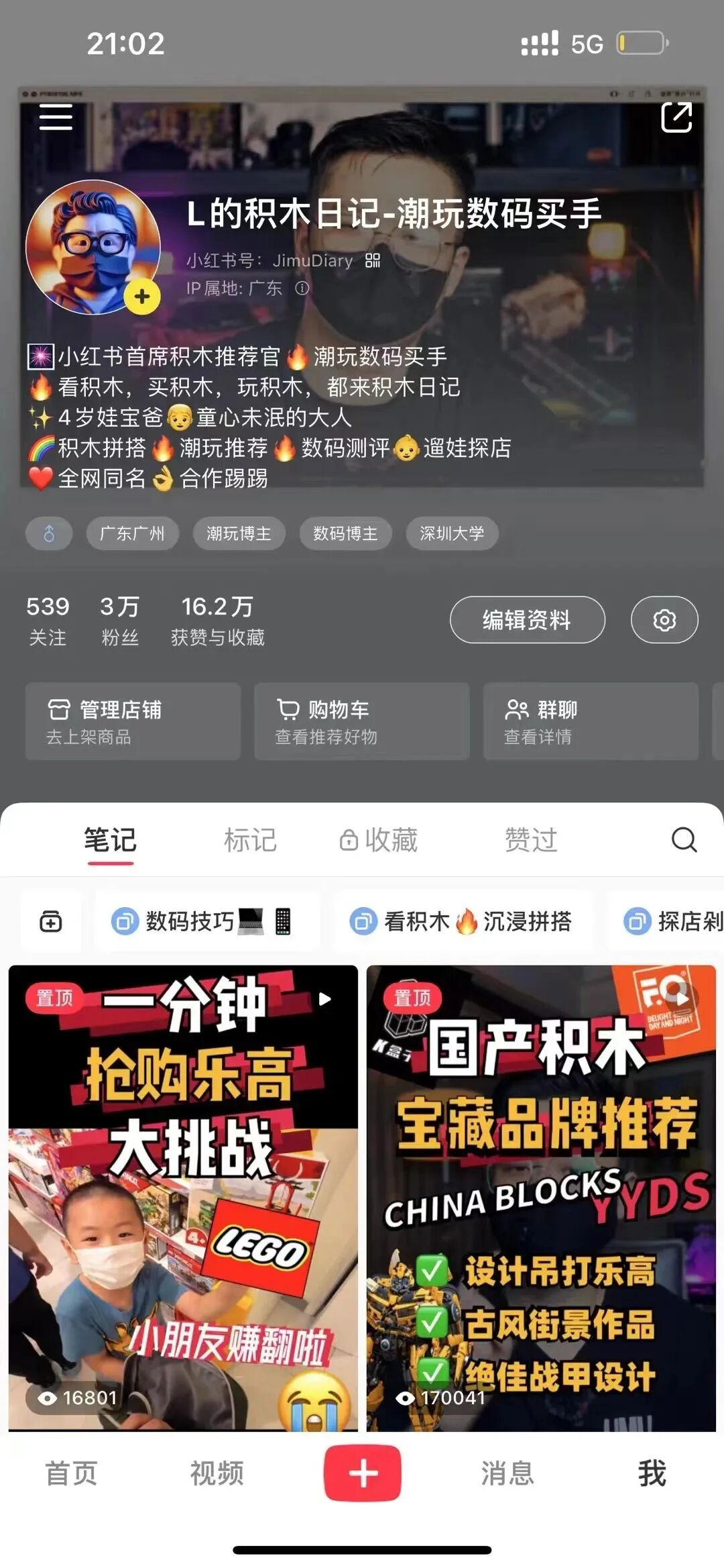 在积木这个小赛道里面,我的粉丝增长速度,说了第二,几乎没有人敢说第一。其实我们现在做小红书好比是用自己数个月,甚至数年的工作精力成本去投资一个股票(账号)那么我们投资股票的时候,会用什么样的方法和思路?应该不会有人想,我感兴趣,就去买什么股票,我擅长什么技能,就去买什么股票了吧?正常的投资选择是——在市场增长的赛道里,选择一个稀缺的标的(股票)。于是,我刻意开始留意一些国内目前增长的市场赛道有哪些。通过一些方法(课程会教),我了解到,目前国内潮玩赛道市场增长的不错。而且我还发现,潮玩赛道里面,目前国产积木这一块是增长最为迅猛的门类。泡泡玛特和名创优品都纷纷下场准备做积木产品。对于积木这件事情,我其实一开始全然不知,从小大根本没咋玩过这个东西。我花了两周时间,我先收集了市面上大多数积木博主的热门视频笔记分类——大体都属于玩具产品拍摄视频,大致分为两种——第一种,是以沉浸式积木拼搭为主的测评视频。主要展示拼搭过程和积木玩具的细节。想要做得好,非常考验拍摄经验和剪辑技术。