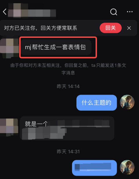 既然是一个新的IP,做账号第一步,肯定是做人设,而头像的设计是重中之重。正常做头像,一般选择真人照片或者找个插画师/设计师帮忙设计,但是我既然要隐姓埋名,自然不能漏出真人的头像,但我又一个人,不能动用设计师和插画师作弊。于是我选择使用了Midjourney这个Ai绘图工具。我拍摄了一张带着口罩的照片,上传去了Midjourney的后台。使用了Midjiourney的以图绘图功能。简单用英语写了一个Prompt:A man with a black mask and glasses 一个带着口罩的男人然后既然做的是积木项目,就使用了比较卡通风格的prompt