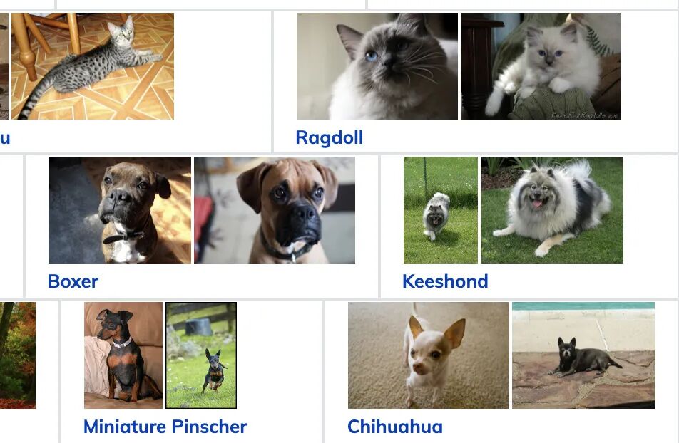 一个包含 37 个类别的宠物数据集,每个类别大约有 200 张图像。这些图像在比例、姿势和照明方面有很大的变化。所有图像都有相关的品种、头部 ROI 和像素级三元图分割的地面实况注释。