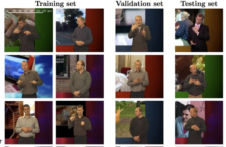 BBC Pose 包含 20 个视频(每个视频长度为 0.5 小时至 1.5 小时),由 BBC 录制,并配有手语翻译。这 20 个视频分为 10 个用于训练的视频、5 个用于验证的视频和 5 个用于测试的视频。