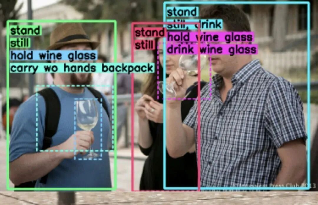 V-COCO是一个基于 COCO 的数据集,用于人机交互检测。V-COCO 提供 10,346 张图像(2,533 张用于训练,2,867 张用于验证,4,946 张用于测试)和 16,199 个人物实例。每个人都有 29 个动作类别的注释,并且没有包括对象在内的交互标签。