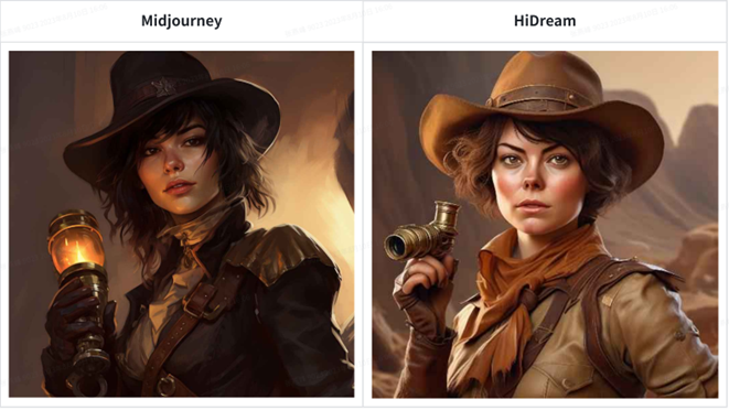 MidJourney直撩设计师,极大地提高了美工设计的效率,数秒钟出一张图,可以说彻底改变了生产方式,使用者付费意愿强烈,11个人一年收入1亿美元,成了迄今为止AIGC商业的最亮点。 今年年初,笔者和设计师一起折腾了好一阵子,研究MidJourney,现场体验了C端付费B端买单——商业模式的硬道理。 同时,也强烈的感受到使用门槛之高—— 一个大美工不断修正复杂又专业的英文描述,通过“修”prompt(提示), 以期产生满意的创意图,同时还要忍耐模型中国风格的缺陷——由于彼时只有MidJourney这种只懂英文、只学习过西方文化素材的模型,所以倒逼设计师利用各种手段提高英文准确度,还要忍受把“Chinese”表现成东瀛或韩国风的窘境。 颠覆性的手段带来设计效率革命,设计师同时忍受着语言和画风错配的煎熬, 强烈的快感加痛感并发,让我们坚信中国需要自己的MidJourney。不仅如此,我们还认为MJ应该被超越,有两个原因:第一,市场呼唤比MidJourney更懂人话的工具;第二,中文元素或全球范围的本地元素应该被很好地表达。除此以外,电商、广告对海量图片、小视频为核心的高效生产工具,对接生产系统的需求,是个庞大的市场。 天赐良机,跟数年来一直图谋共同“搞事情”的科大师弟梅涛院士一拍即合,懂算法、会模型、工业界操练了多年的老兵下场,于是,就有了阿尔法公社和科大校友们种子轮支持梅涛院士创业的HiDream。短短几个月, HiDream表现出了难以想象的迭代速度和惊艳的效果,彻底颠覆了业界由来已久的“学者创业偏见”。 以下是相同Prompt下,MidJourney和Hidream生成实例对比图。 Prompt:Dungeons and dragons character portrait,
