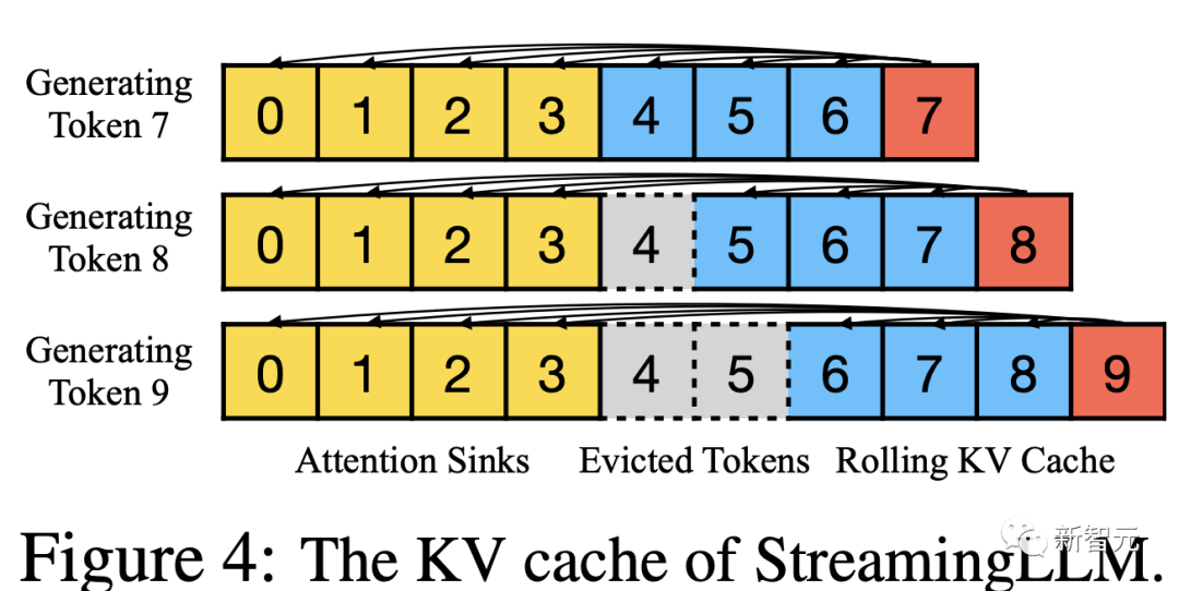 因此,Streaming LLM只是将注意力集中token的KV(只需 4 个初始token就足够了)与滑动窗口的KV保持在一起,以锚定注意力计算并稳定模型的性能。