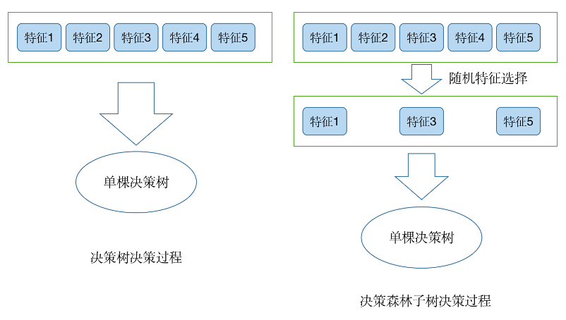 对于某棵决策树,由于它的最佳划分特征是随机选择的,因此它的预测结果往往是不准确的,但是多棵决策树组合在一起,就可以达到很好的预测效果。