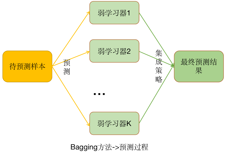 使用Bagging方法训练出来的模型在预测新样本分类的时候,会使用多数投票或者取平均值的策略来统计最终的分类结果。