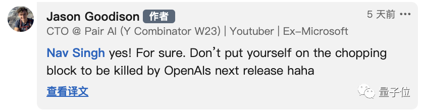 第一点对于简单包装,奥特曼举例比如有公司正在解决GPT模型的小缺陷,尤其只在界面上做文章的。一来,OpenAI已经在解决大部分工作了;二来,这些仅在成本和速度上与OpenAI一较高下的公司,竞争优势并不会长久且持续。企业必须在提供真正独特的价值。有网友联想到,前段时间红杉资本提出生成式AI进入到第二阶段——炒作和快速展示正在被真正有价值和完整的产品体验所取代。不要把自己放在菜板上,被OpenAI的下一个版本杀死。
