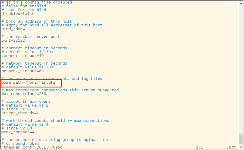把base_path=/home/yuqing/fastdfs改为base_path=/home/fastdfs