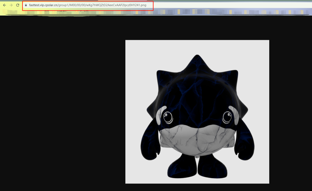 我们来测试一下访问配置成功的二级子域名,打开浏览器,输入公网地址加资源路径,访问我们上传在fastDFS里的文件,出现图片即可远程访问成功。现在,我们全网唯一的私有二级子域名,就创建好了。