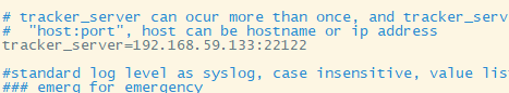 继续修改,设置tracker服务器:IP,tracker_server=Linux局域网ip:22122 ,设置好后保存退出