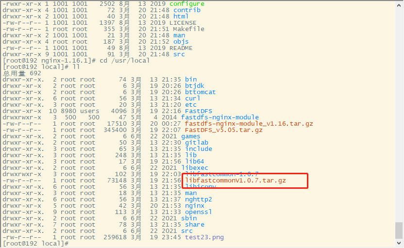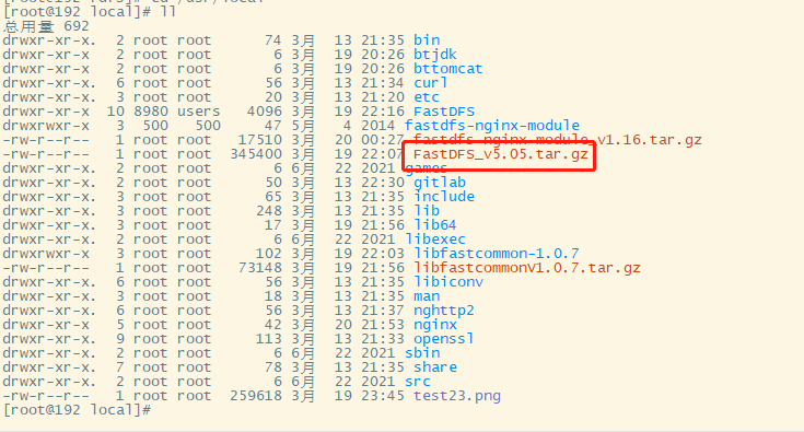 下载文件后,上传FastDFS_v5.05.tar.gz到/usr/local/