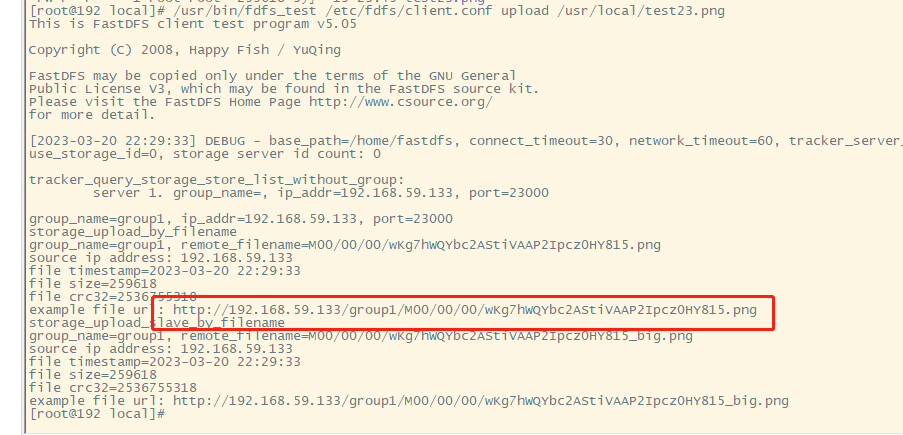 然后按照格式,测试将test23.png图片上传到FastDFS中
