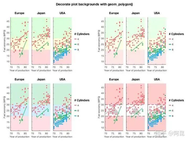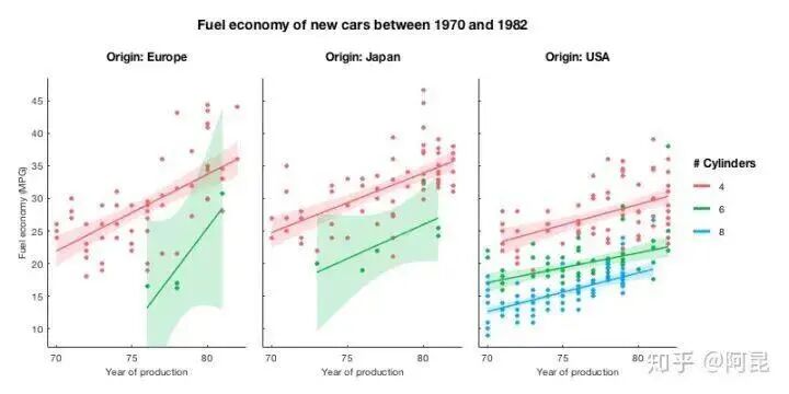翻遍这个问题下的所有回答,发现凡是提到Matlab的,其评价中常有‘锯齿’,‘菜鸟’,‘难看’,‘不忍直视’等标签。然而,2020年了,技术提升了,观念进步了,当一些基本问题解决后,Matlab还那么‘不堪’吗?观察Mathematica、Origin、Python/matplotlib、R/ggplot2等软件绘制的数据、结果图,其与Matlab图的差异主要体现在点、线、面等对象属性(位置、尺寸、颜色等)的不同上。既然只是属性的不同,那是不是只要修改一下这些信息,就可以实现各种软件绘图风格之间的转换了呢?比如,这是高赞回答 @冯昱尧用Python/matplotlib绘制的一幅图:我们用Matlab默认属性来绘制,效果是这样的(没加误差棒):然后,只需再修改一下位置、尺寸、颜色等信息,就可以得到风格差不多的图(没加误差棒):当我们用这一思想来思考该如何绘制插图时,就很容易实现自己的小想法,仿造甚至创造出理想的插图。比如,某一天,发现傍晚的天空颜色很美,心想:为什么不能把它画到论文插图里呢?(见:Matlab论文插图配色2——自然渐变)再比如,某一天,看到女朋友的照片,觉得很美,心想:为什么不能把她画到论文插图里呢?(见:Matlab论文插图配色1——是女朋友的颜色)这时,有朋友就要说了:“哎呀答主,你整这些个花里花哨的东西,还不是得一行代码一行代码的敲出来啊,太麻烦了吧。”就像R有ggplot2,Python有matplotlib,Matlab其实也有很多现成的绘图工具包,并不需要你自己开发。Pierre Morel [1] 结合ggplot2,开发了gramm工具,用于绘制复杂图形。