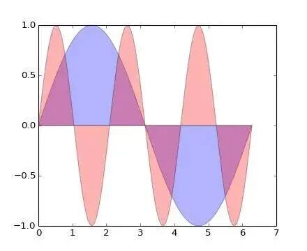 (以下图片均引用自 Thumbnail gallery )plt.fill(x, y1, 'b', x, y2, 'r', alpha=0.3)