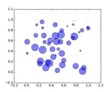 plt.scatter(x, y, s=area, alpha=0.5)
