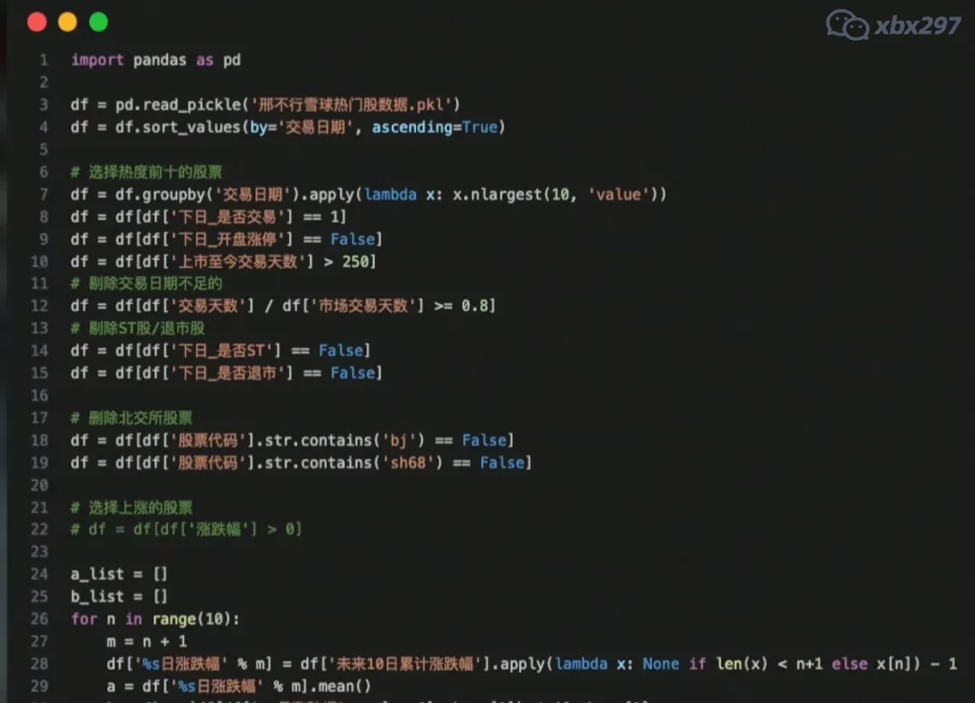 接下来我们就可以借助Python代码,尝试去探究对散户而言每天开盘买入过去24小时所有热门股,并持有未来1/2/3/10天的平均收益能有多少?