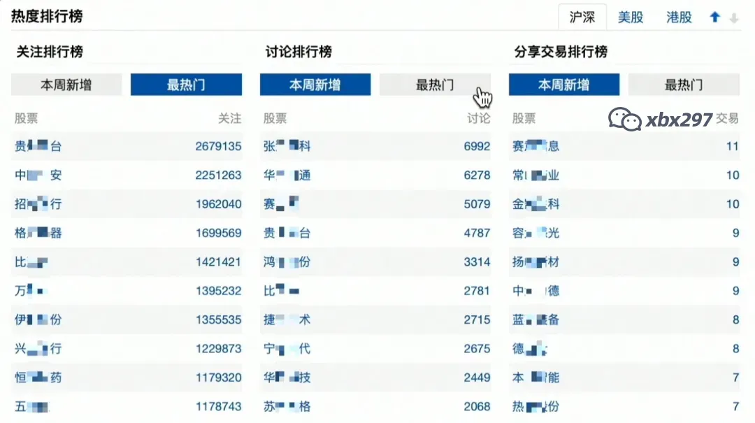 它反映了过去一段时间雪球用户对某股票的关注度,搜索讨论的越多就越热门。