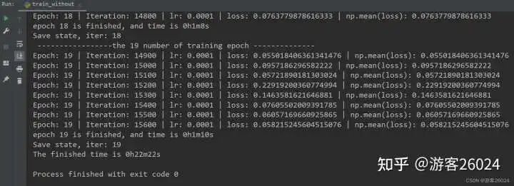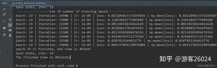 optim.zero_grad() loss_train.backward() optim.step() iter = iter + 1 if iter % 100 == 0: print( "Epoch: {} | Iteration: {} | lr: {} | loss: {} | np.mean(loss): {} " .format(epoch, iter, optim.param_groups[0]['lr'], loss_train.item(), np.mean(loss))) if args.tensorboard: writer.add_scalar("lr", optim.param_groups[0]['lr'], epoch) scheduler.step(np.mean(loss)) t2 = time.time() h = (t2 - t1) // 3600 m = ((t2 - t1) % 3600) // 60 s = ((t2 - t1) % 3600) % 60 print("epoch {} is finished, and time is {}h{}m{}s".format(epoch, int(h), int(m), int(s)))