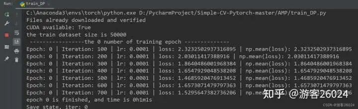 # 7.Optimizer optim = torch.optim.AdamW(model.parameters(), lr=args.lr) scheduler = torch.optim.lr_scheduler.ReduceLROnPlateau(optim, patience=3, verbose=True) # 8. Set some parameters to control loop # epoch iter = 0 t0 = time.time() for epoch in range(args.epochs): t1 = time.time() print(" -----------------the {} number of training epoch --------------".format(epoch)) model.train() for data in train_dataloader: loss = 0 imgs, targets = data if args.cuda == cuda: cross_entropy_loss = cross_entropy_loss.cuda() imgs, targets = imgs.cuda(), targets.cuda() with autocast(): outputs = model(imgs)