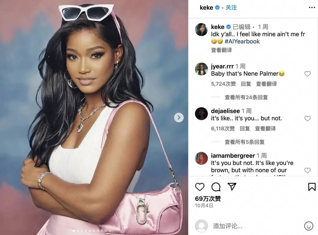 Instagram 粉丝 1367 万的演员 Keke Palmer.