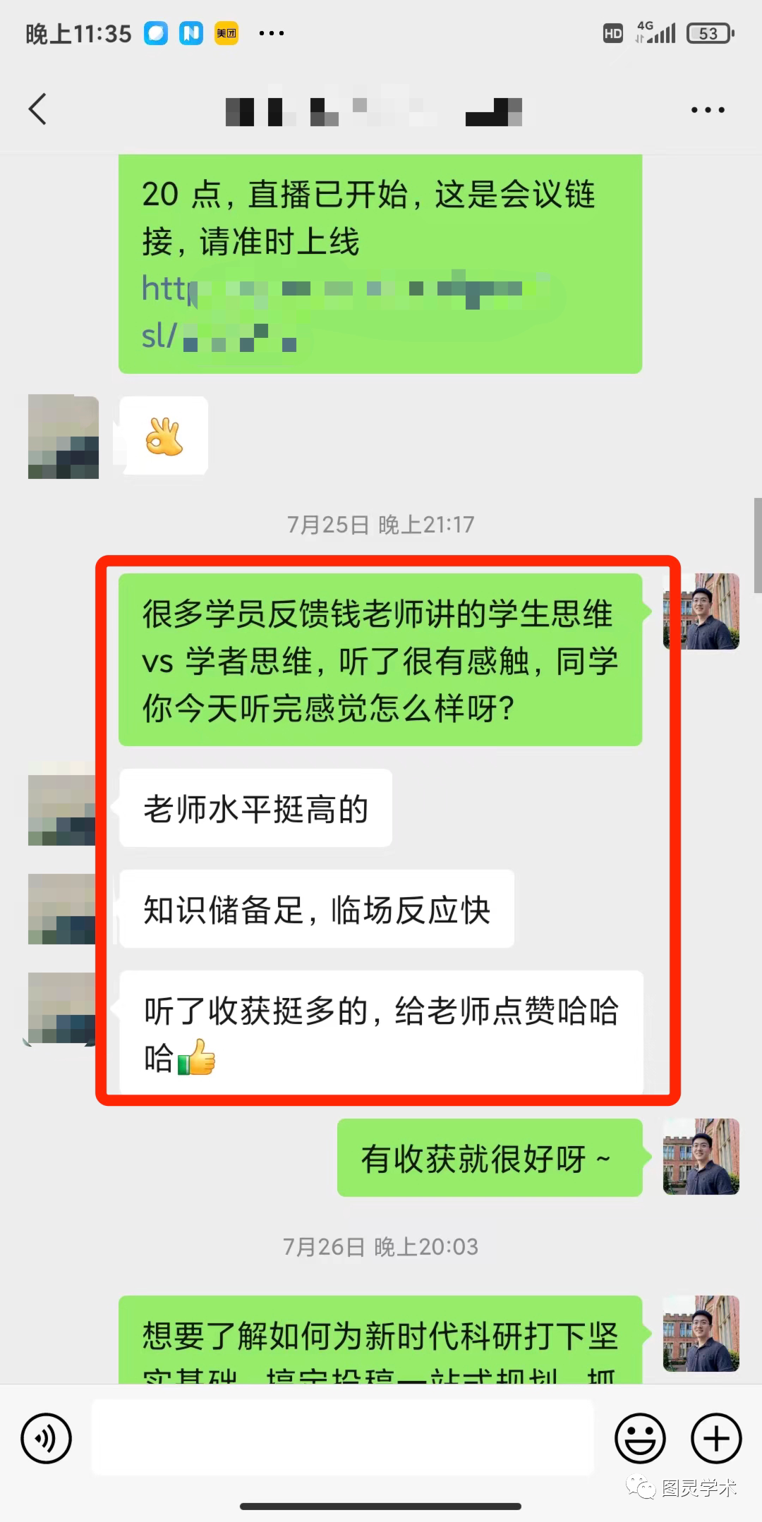 每次课程结束,都会收到各种好评。