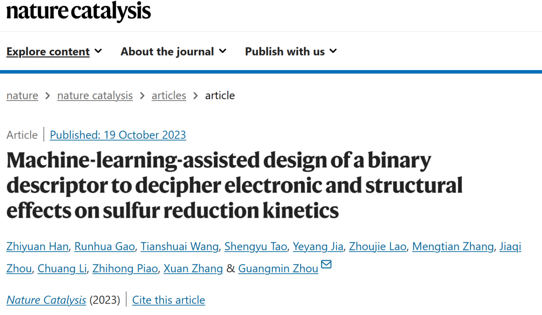 Machine-learning-assisted design of a binary descriptor to decipher electronic and structural effects on sulfur reduction kinetics, Nature Catalysis, 2023, https://doi.org/10.1038/s41929-023-01041-z.