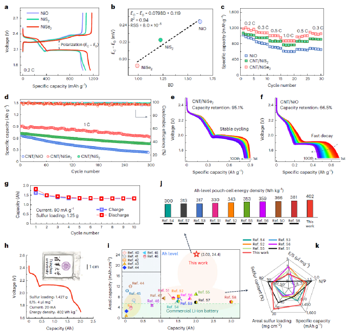 的硫面负载或-20℃的低温下实现良好的循环稳定性。采用添加NiSe