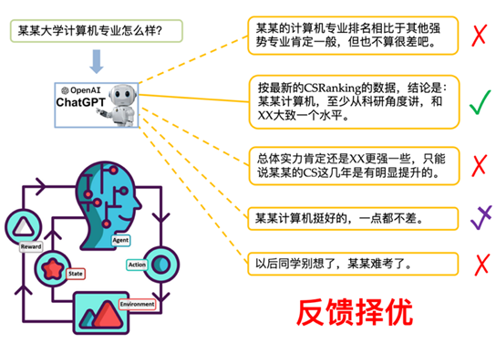 以上介绍了 ChatGPT 三个主要训练步骤:语言模型、提示精调和强化学习。其中第三步强化学习实施起来相对比较困难。除了强化学习本身对于初始值和超参设置比较敏感外,其间一般需要多次人工标注。因为目标模型 Z 经过多次调整和优化之后,之前获得的奖励模型 已经不再适用于模型 Z 生成内容的评价了(因为生成内容的分布已经发生了变化),所以还有较大的改进空间。