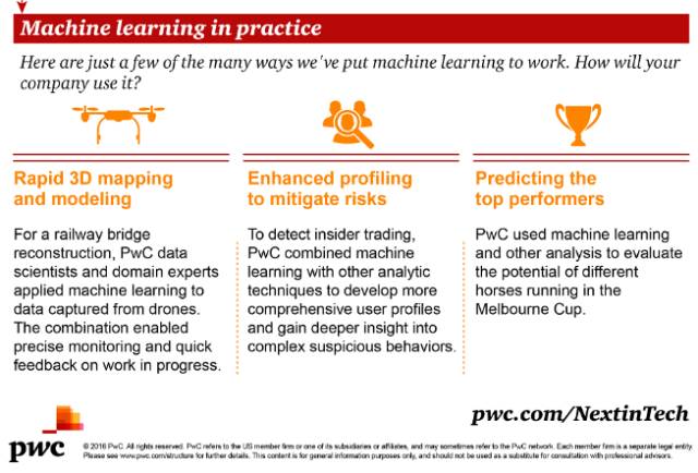 下面,普华永道的信息图示概述了机器学习的工作原理,机器学习与人工智能的关系,以及企业应该在哪些地方利用它们。