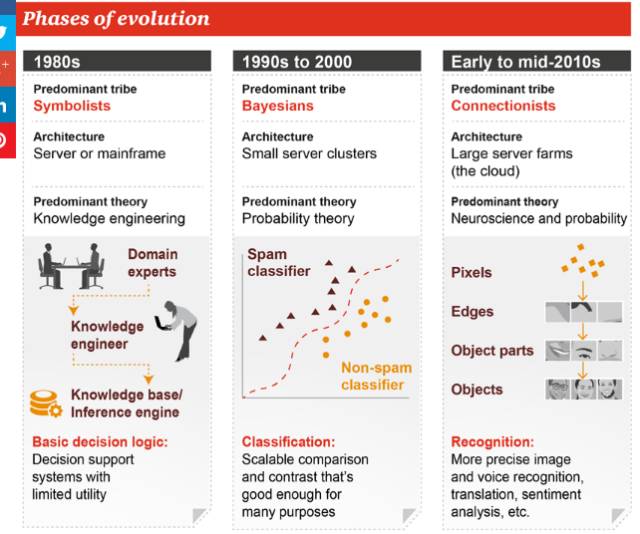 机器学习能够通过“学习”大量的数据,在不需要人为编程的情况下,生成以及识别特定的对象,比如人脸。目前,机器学习也是商业应用中最常用的算法。