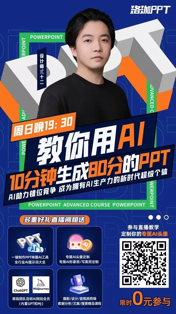 本周日晚7点半,弎十二老师在直播间教你如何在10分钟内利用AI工具完成需要做两小时的PPT
