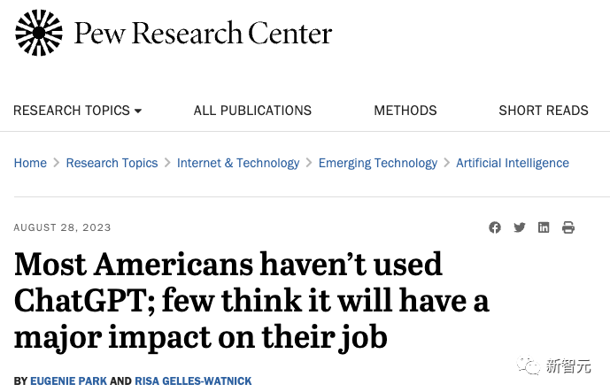 文章地址:https://www.pewresearch.org/short-reads/2023/08/28/most-americans-havent-used-chatgpt-few-think-it-will-have-a-major-impact-on-their-job/