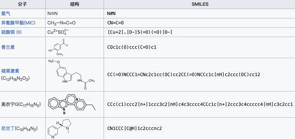 图 2:部分物质的 SMILES 表达式