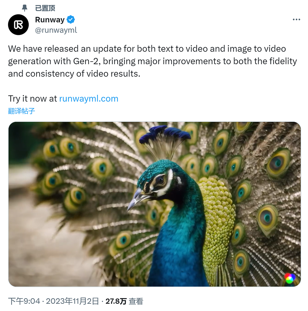 据量子位报道,11月2日,AI创企Runway于社交媒体X上宣布旗下AI视频生成工具Gen-2更新,分辨率提升至4K,大幅提高保真度和一致性。