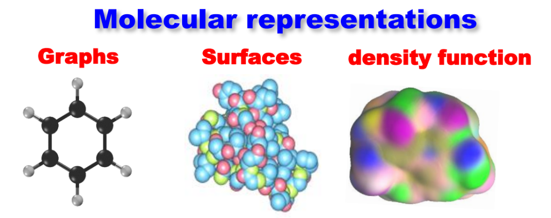 类似地,在处理分子数据(如小分子数据和蛋白质数据)时,也有多种不同的数据表示方式。一种常见方法是基于共价键的图表征,其中每个节点代表一个原子,边代表共价键,形成一种图的表示形式。