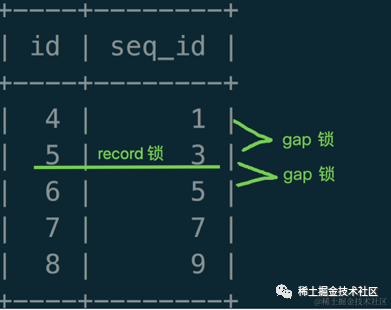 -- seq_id 是非唯一索引 select * from table where seq_id=3 lock in share mode; select * from table where seq_id=3 for update; update table set name = 'zhangsan' where seq_id = 3; delete from table where seq_id = 3;
