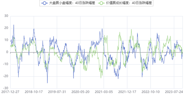 这个指标本质上是一个结构观察,即成长价值、大盘小盘在40个交易日的涨跌幅差,在《固收+与风格轮动:规律、策略与Python实现》中我们有详细解释。但将这个指标放在这里是提醒投资者,如今结构化行情下,强势板块的过热,也是整体阶段机会的终结信号。尤其在情绪波动下,投资者可能产生“这一次不一样”或者“择券能维持绝对回报”的感受,这个指标往往提示实际这来自风格的单向偏移。