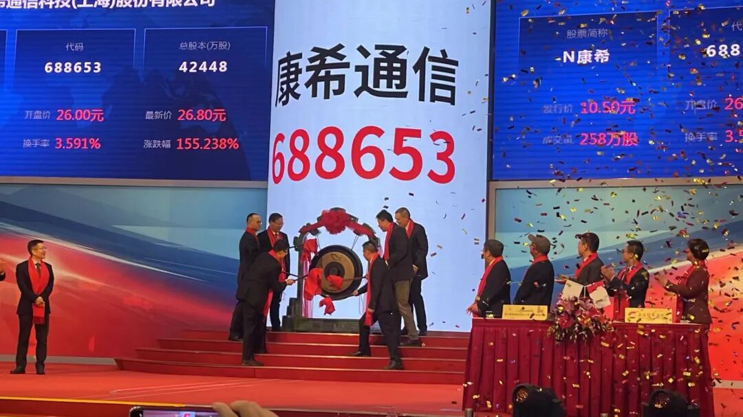 集微网报道,11月17日,国产Wi-Fi FEM引领者康希通信在上交所科创板正式挂牌上市,公司证券代码为“688653”,发行价格为10.50元/股,发行市值为44.57亿元。截至发稿,康希通信股价最高涨至29.26元,涨幅达178.67%,总市值超110亿元。