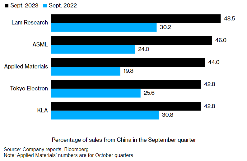 7.全球主要芯片设备制造商Q3在华营收占比超40%