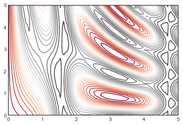 三维轮廓图 类似于我们在[密度和轮廓图]中介绍的内容,mplot3d