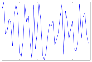 ax = plt.axes() ax.plot(np.random.rand(50 )) ax.yaxis.set_major_locator(plt.NullLocator()) ax.xaxis.set_major_formatter(plt.NullFormatter())