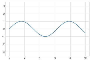 plt.plot(x, np.sin(x)) plt.axis('equal' );