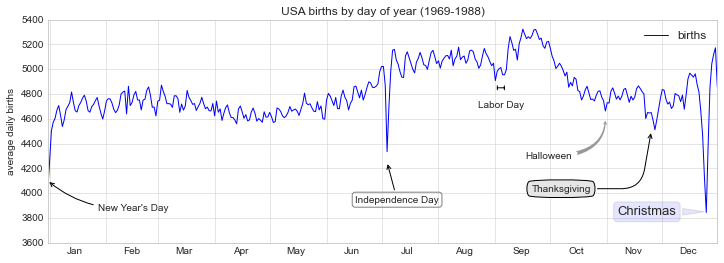 这些标签的位置、大小和风格可以通过上面函数的可选参数进行设置。参阅 Matplotlib 在线文档和这些函数的文档字符串可以获得更多的信息。