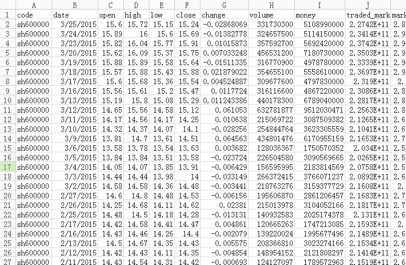 1. 从csv格式的文件中导入股票数据,数据例图如下: